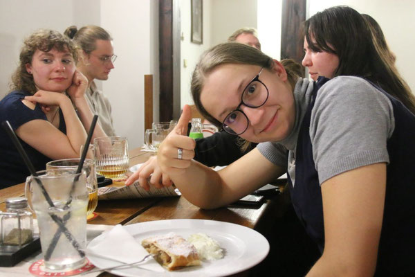 Eine Reise nach Prag stand in diesem September - 2025 - in unserem Programm. Mit dem Bus ging es von Halle über Dresden in die Goldene Stadt an der Moldau. Unsere Quartier war nur drei Minuten von Karlsbrücke und Altstädter Markt entfernt. Die Lage war großartig. Und so auch unsere Unterkunft. Wir alle - 19 an der Zahl - durften uns im Dachgeschoss eines sehr alten Hauses ausgesprochen wohlfühlen. Verschiedene Räume ermöglichten den gelegentlichen Rückzug, ein großer Raum war wie gemacht für unser Zusammensein: spielend, essend, lesend oder einfach entspannt auf dem Sofa lümmelnd.