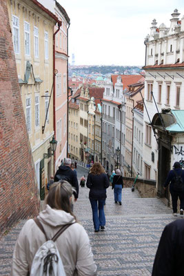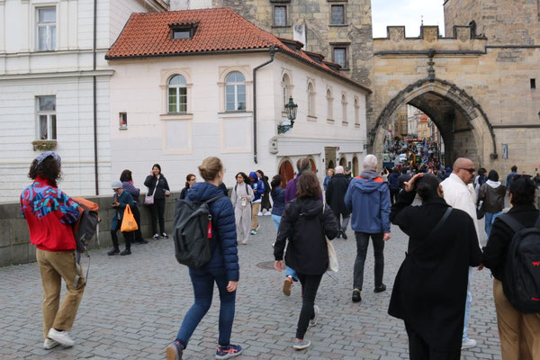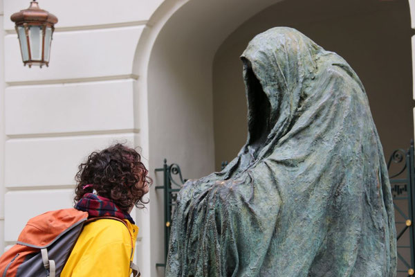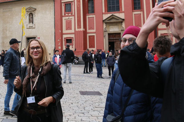 Unser Guide Alena, die wir über die Seite prag-to-go.de gefunden hatten, führte uns ausgesprochen unterhaltsam und kompetent durch die Stadt. Gleich am ersten Tag führte sie uns auf unseren ausdrücklichen Wunsch hin in das wichtige, immer wieder aber auch komplizierte Verhältnis von Tschechen und Deutschen in Prag und der Tschechei ein. Interessant: Zeitweise wurde in Prag kaum noch Tschechisch gesprochen. Das änderte sich mit der beginnenden nationalen Bewegung im 19. Jahrhundert. Die tschechische Sprache, so Alena, wurde damals fast nur noch auf dem Land gesprochen und musste mit deutsprachigen Lehrbüchern neu vermittelt werden. Den Schlusspunkt dieser Entwicklung setzten schließlich die Besetzung des Landes durch das nationalsozialistische Dritte Reich und am Kriegsende die Vertreibung der Deutschen.