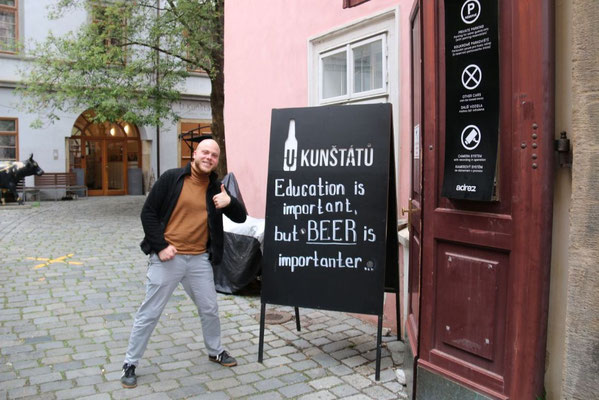 Am letzten Tag fiel der Blick dann noch einmal auf das Café gegenüber unserer Bleibe, das Montmatre. Einst Treffpunkt und Ort ausgelassener Feiern für Menschen wie Franz Kafka, Jaroslav Hašek, Egon Erwin Kisch, Franz Werfel und später dann auch Vaclav Havel.